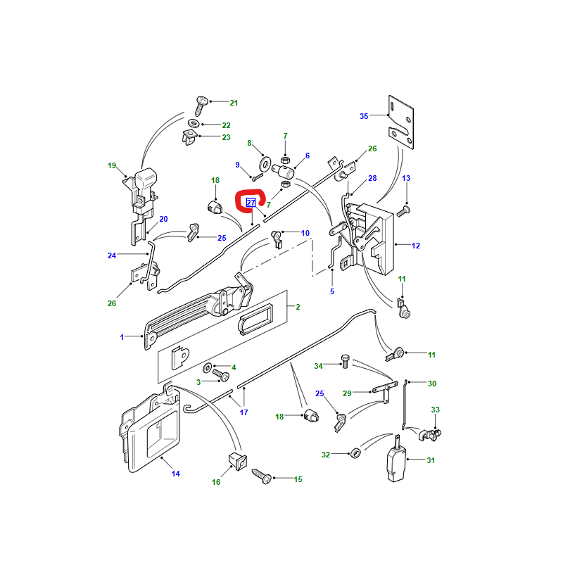 | Description: | The rear side door linkage from the lock button connects the locking mechanism to the door latch, enabling the door to lock and unlock. |