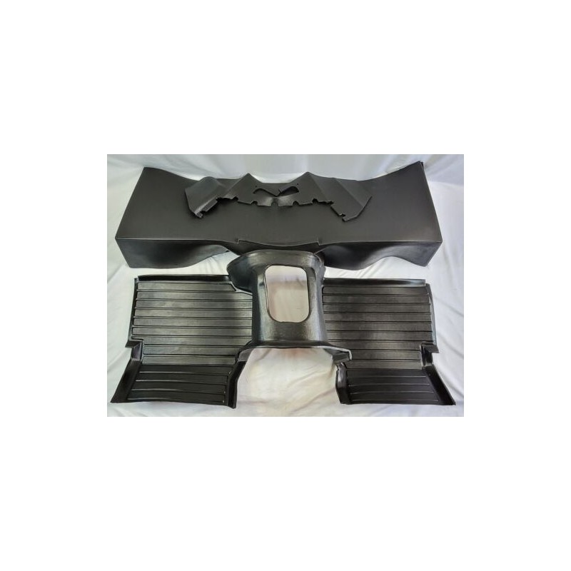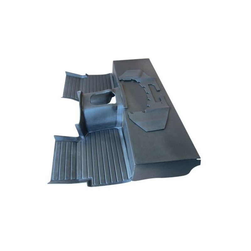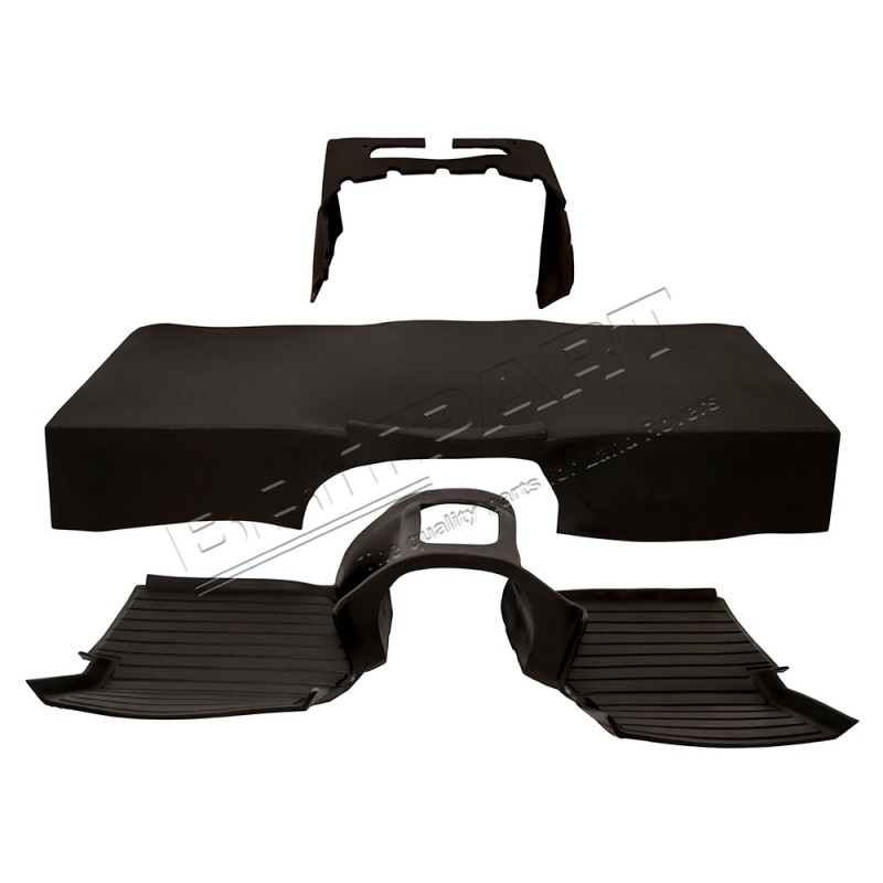 Improve sound deadening and heat transfer from the gearbox and exhaust system with this MOD and Land Rover approved hard wearing 3 piece floor and wheel arches moulded mat system in black. For use with an R380 gearbox.